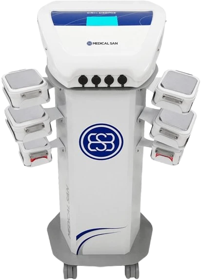 O Criodermis Medical San é um equipamento de Criolipólise que vem com inovações como 6 aplicadores, sendo 4 aplicadores simultâneos. Permitindo ao profissional trabalhar em 2 modos: Criolipólise de Contraste e Criolipólise Convencional. O aparelho ainda conta com mais inovações como o Conceito Crioplace, que combina maior otimização de tempo, maior área de tratamento e muito mais segurança. Além de tudo isso, o aparelho é o mais leve e ergonômetro do mercado, pesando apenas 7kg e de fácil transporte.